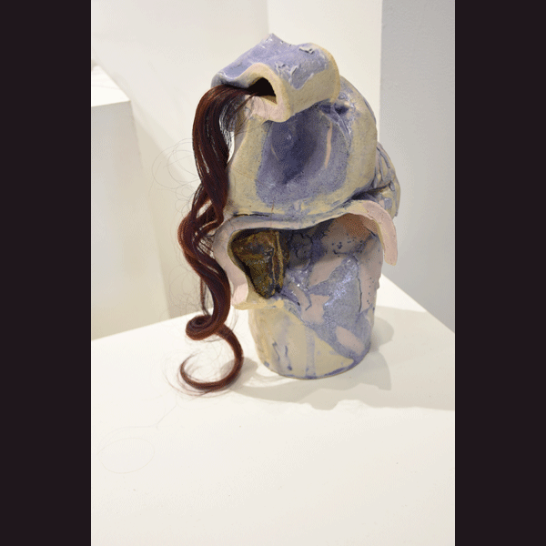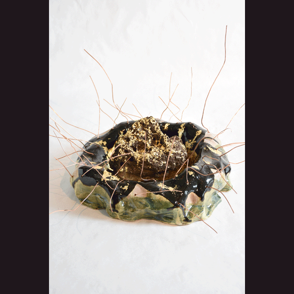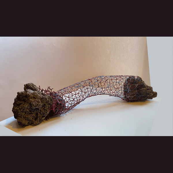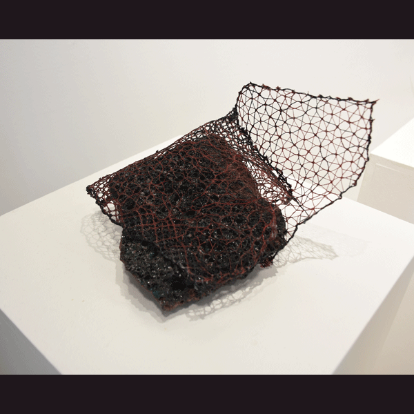 S’échappant de la rusticité de la pierre-céramique, le fil souple se noue en quelques dentelles au fuseaux.