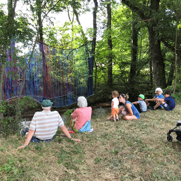 Ainsi dans nos installations, selon les projets en continu ou en évènementiel et relayé, un son diffusé en son coeur ralentit le regard du passant, l’amène à être plus attentif à ce qu’il voit et entend.