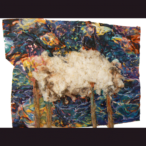 Les volumes laineux sont sonorisés et diffusent la composition musicale d’Alain Engelaere -Mouton-baleine- utilisant des bêlements et des chants de baleines.